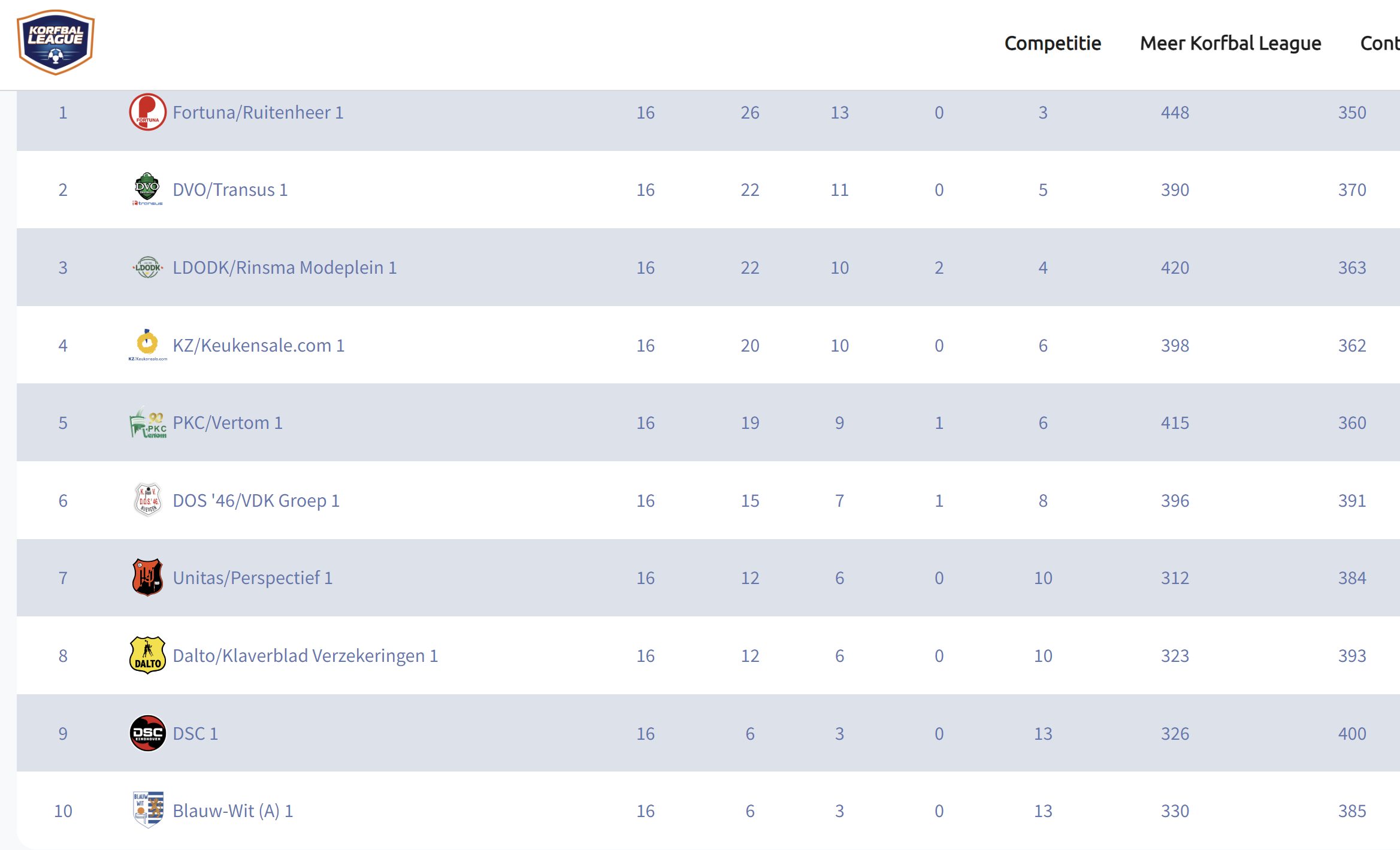 Op korfballeague.nl is de actuele stand te vinden, waaruit blijkt dat de verschillen in de middenmoot klein zijn. Hoewel de exacte ranglijst dynamisch is, staat LDODK in een positie waarin zowel stijgen als dalen nog mogelijk is.